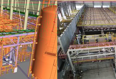 Diseñamos y supervisamos obras civiles e industriales, incluyendo estructuras metálicas y de hormigón, cimentaciones, obras de planta y soporte a equipos. Aplicamos normativas vigentes y modelos 3D para garantizar seguridad, calidad y funcionalidad.
